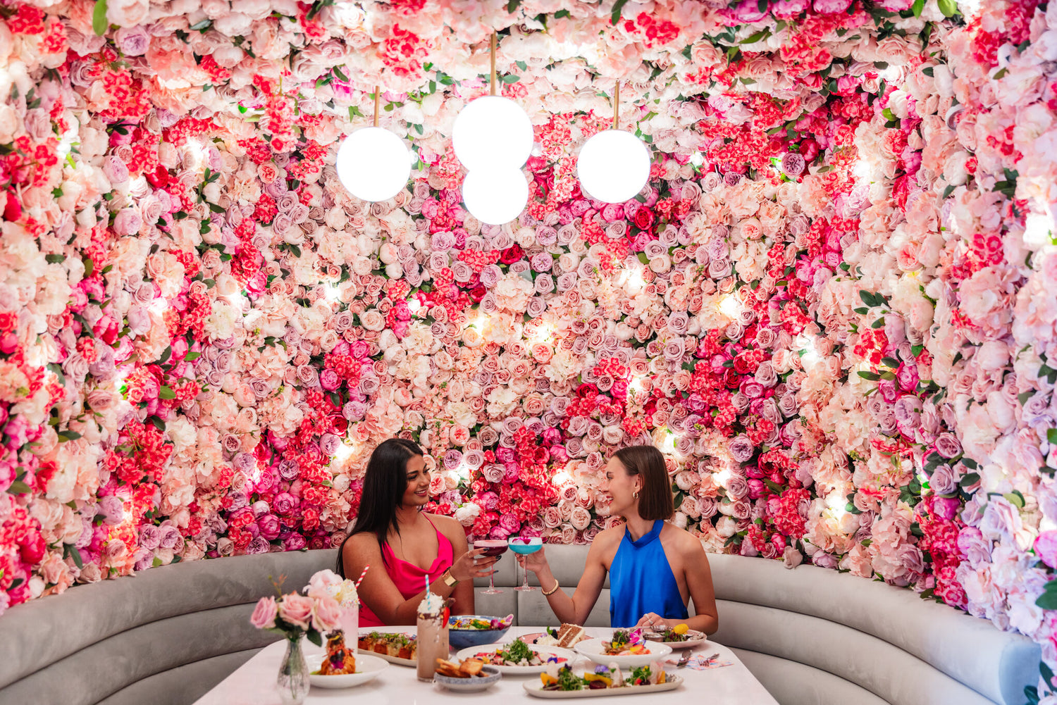 Embrace your inner Goddess in our breathtaking wall-to-ceiling floral booth, the Goddess Oasis! This delightful area is designed for larger groups that can accommodate up to 7 people. What truly sets Goddess Oasis apart is its enchanting decor of pink silk florals surrounding you from the walls to the ceiling, creating a whimsical and romantic ambiance perfect for special gatherings. So get ready to call up your besties and plan your next hangout!