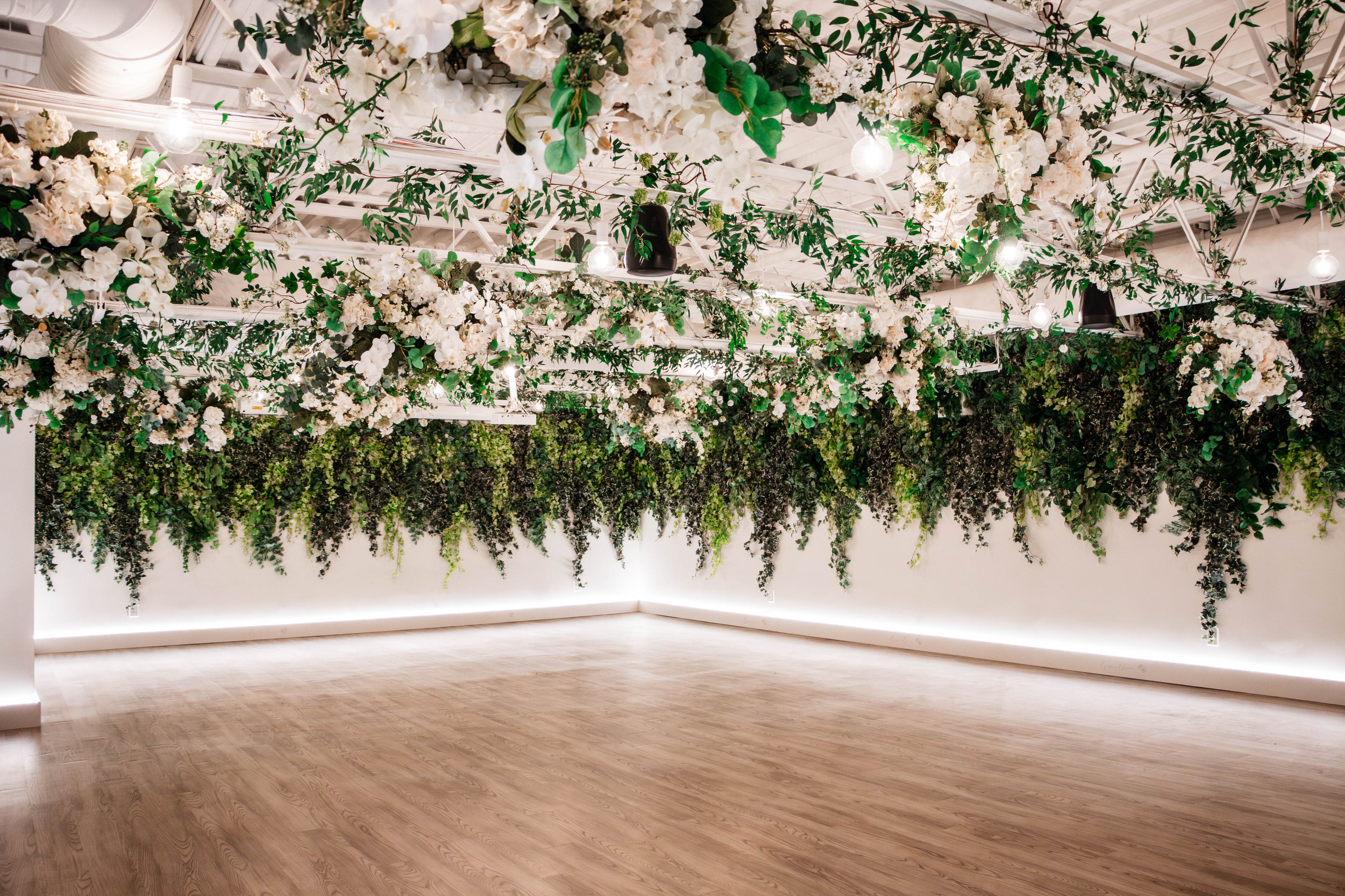 The Secret Garden is the perfect venue for workshops, classes, seminars, birthdays, weddings, and other private functions. The space includes beautifully entwined greenery, gorgeous hanging florals, dimmable lights, and seating for up to 60 guests.